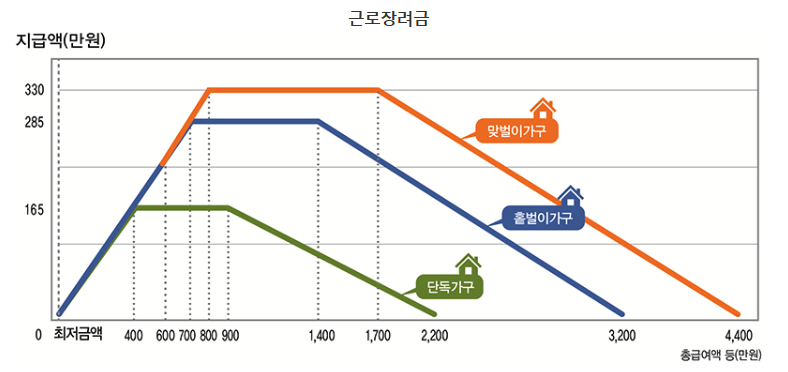 - 홑벌이가구: 연간 총소득 3,400만 원 이하