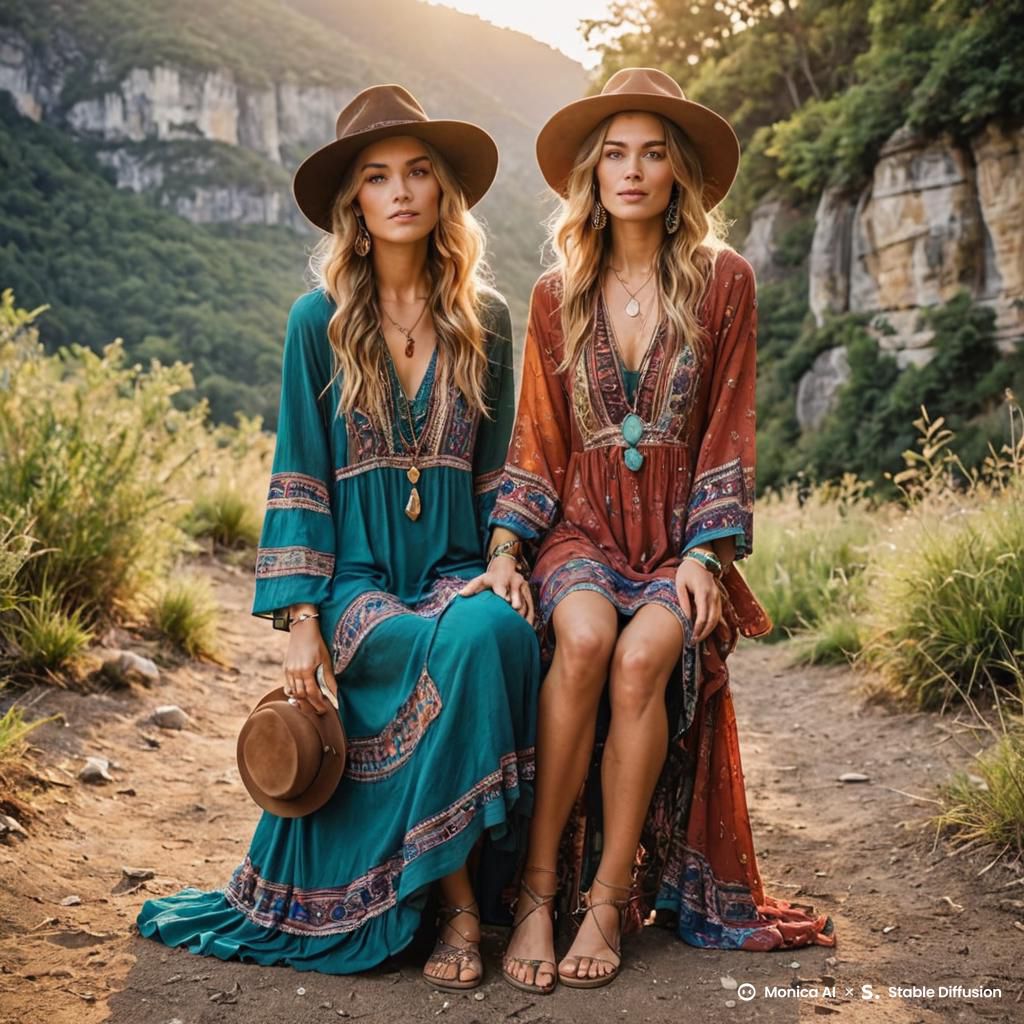보헤미안 시크 스타일은 빈티지한 느낌을 강조하며, 여기에 다양한 문화에서 영향을 받은 에스닉 패턴을 더해 독특한 분위기를 자아냅니다. 인도, 모로코, 중동 지역에서 영감을 받은 패턴이 많이 사용되며, 자수 장식이 들어간 옷이나 태슬(술 장식)이 달린 아이템도 자주 활용됩니다. - 자연 소재의 활용